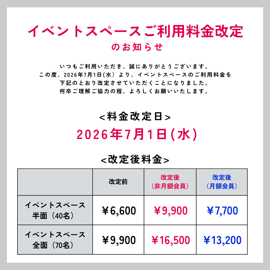 【重要なお知らせ】イベントスペース料金改定のご案内