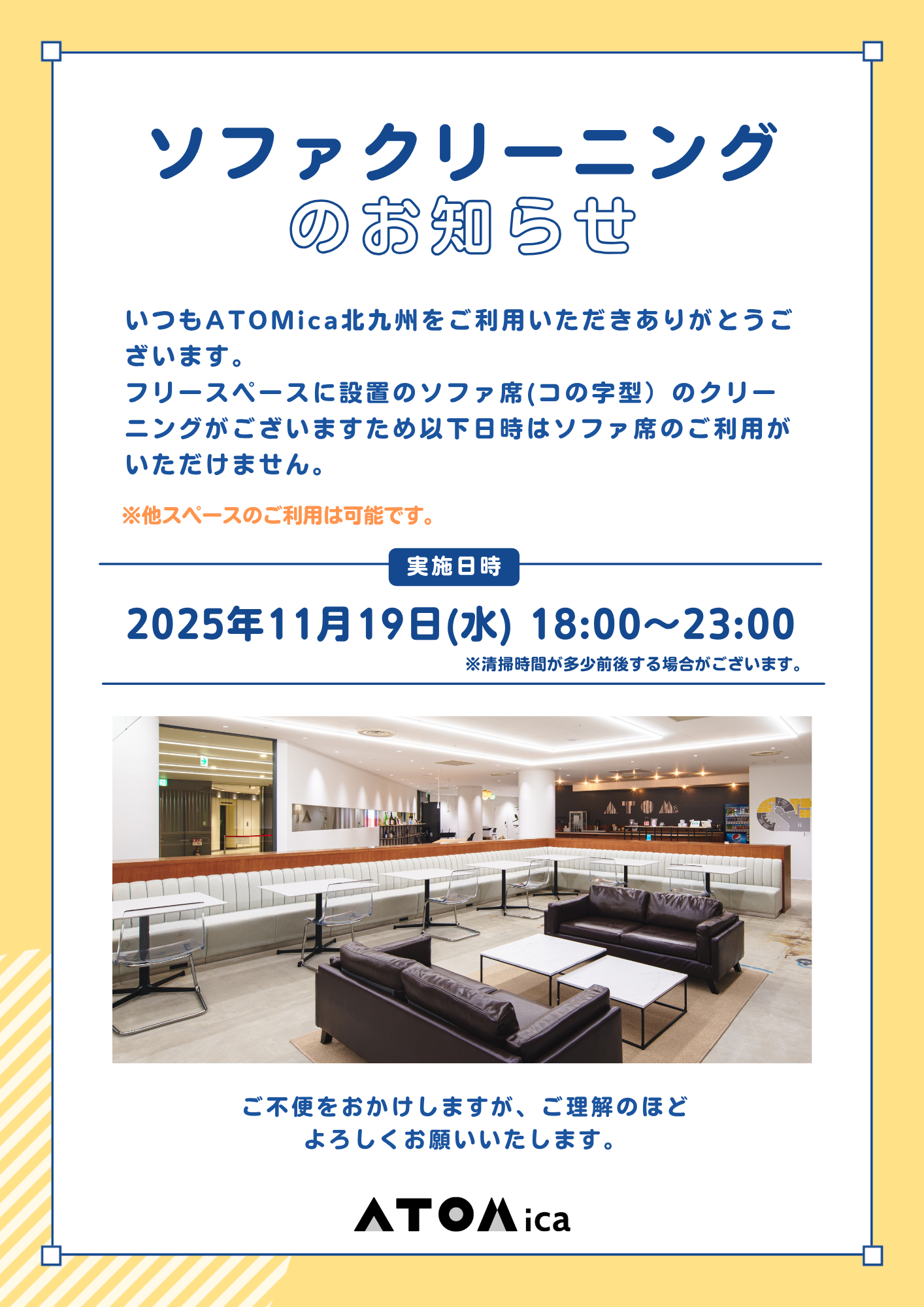 【重要なお知らせ】11月19日 ソファークリーニング実施 および ご利用ルールの再確認について